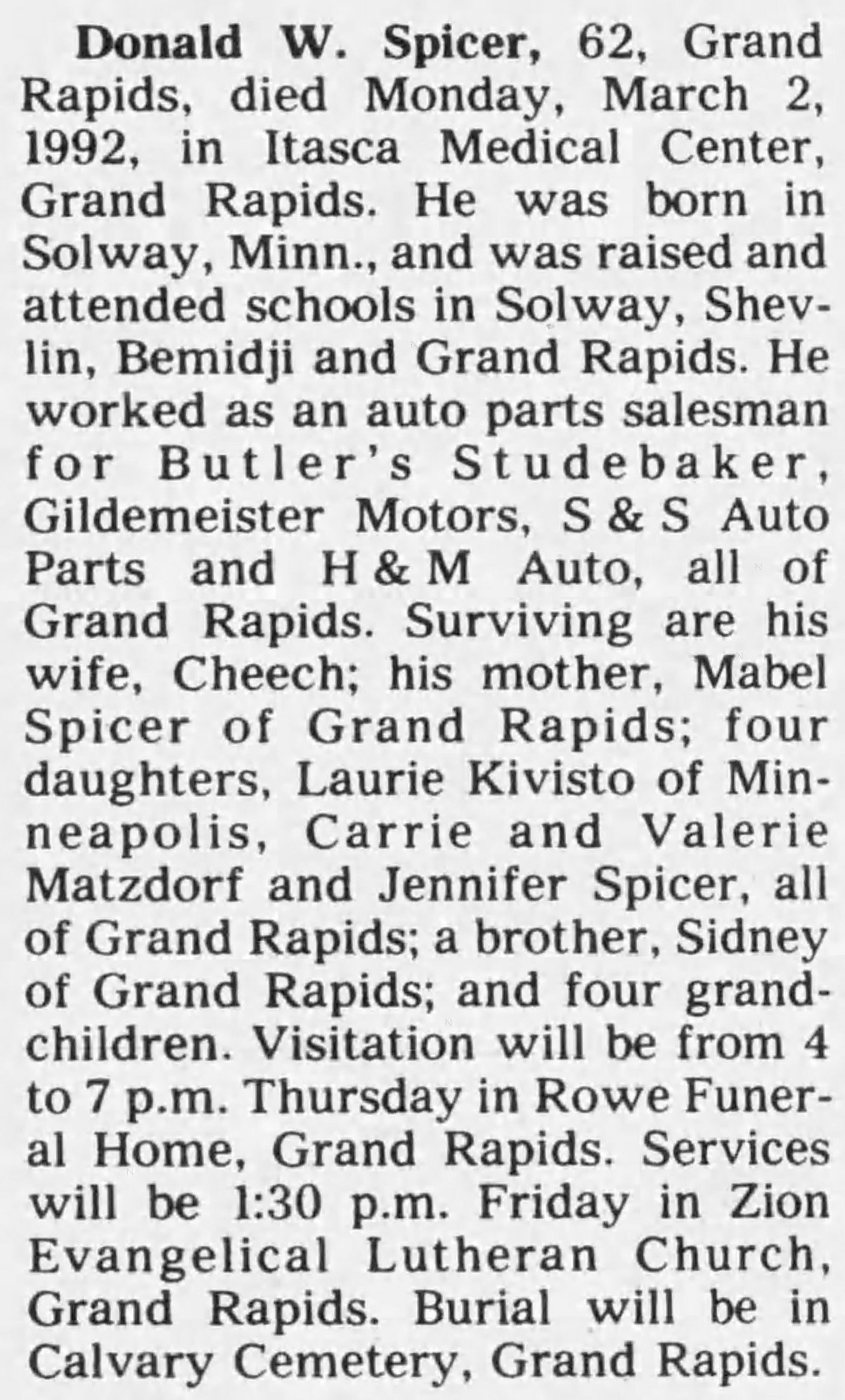 March 2, 1992 in Grand Rapids, Itasca Co, MN.