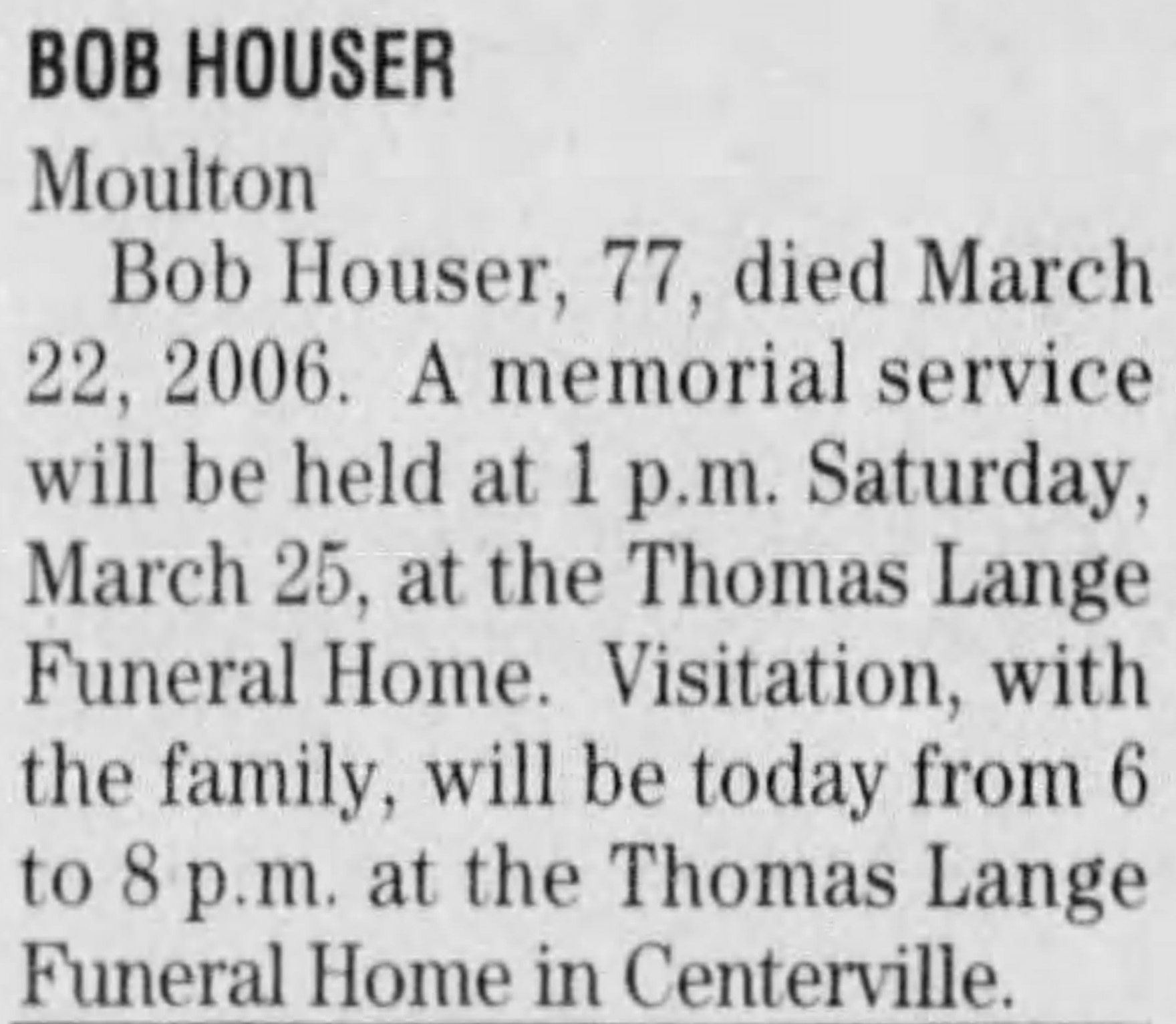| Died: | March 22, 2006 in Centerville, Appanoose Co, IA. View Obituary |