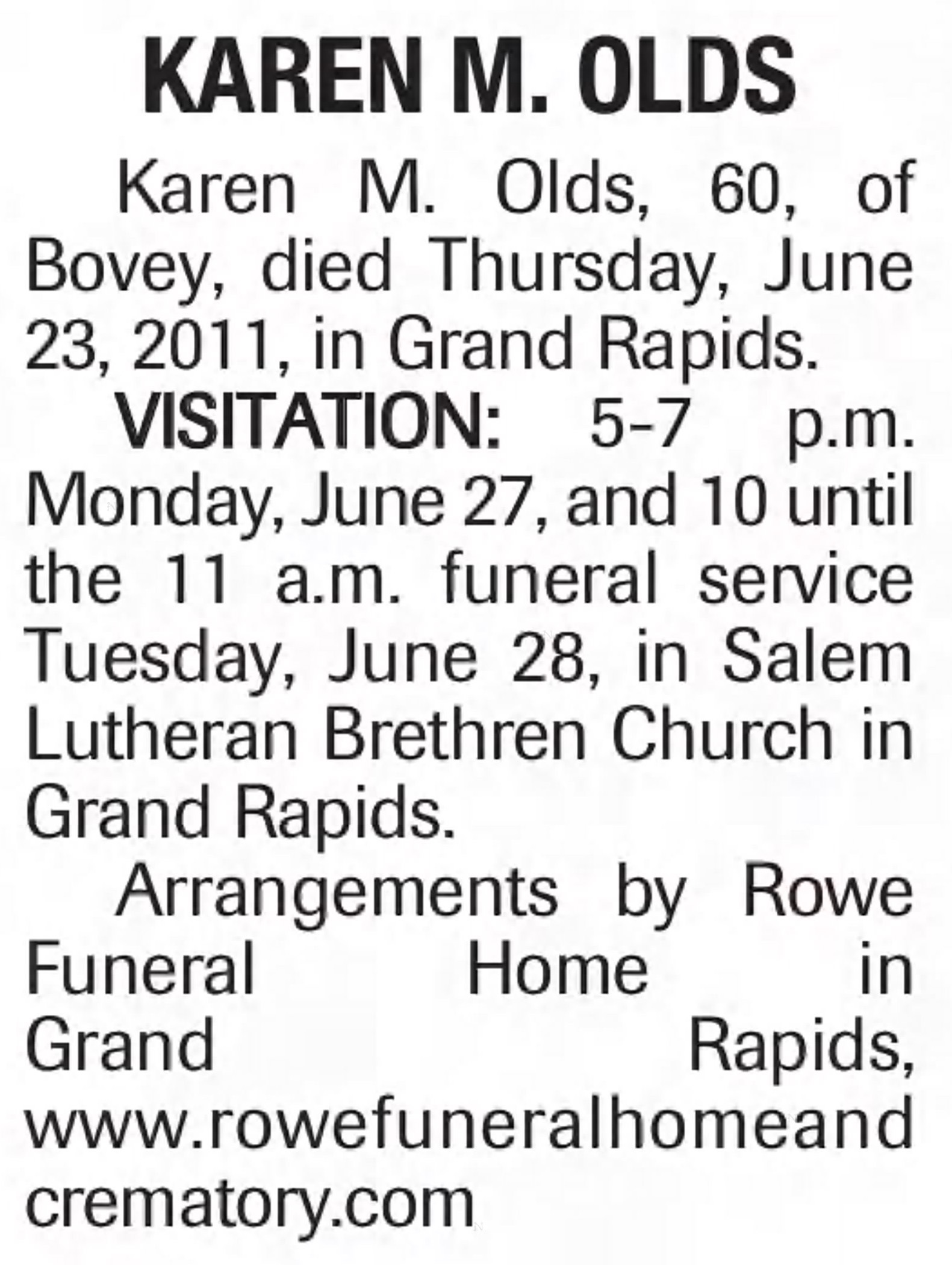 - Death Notice - Death notice for Karen