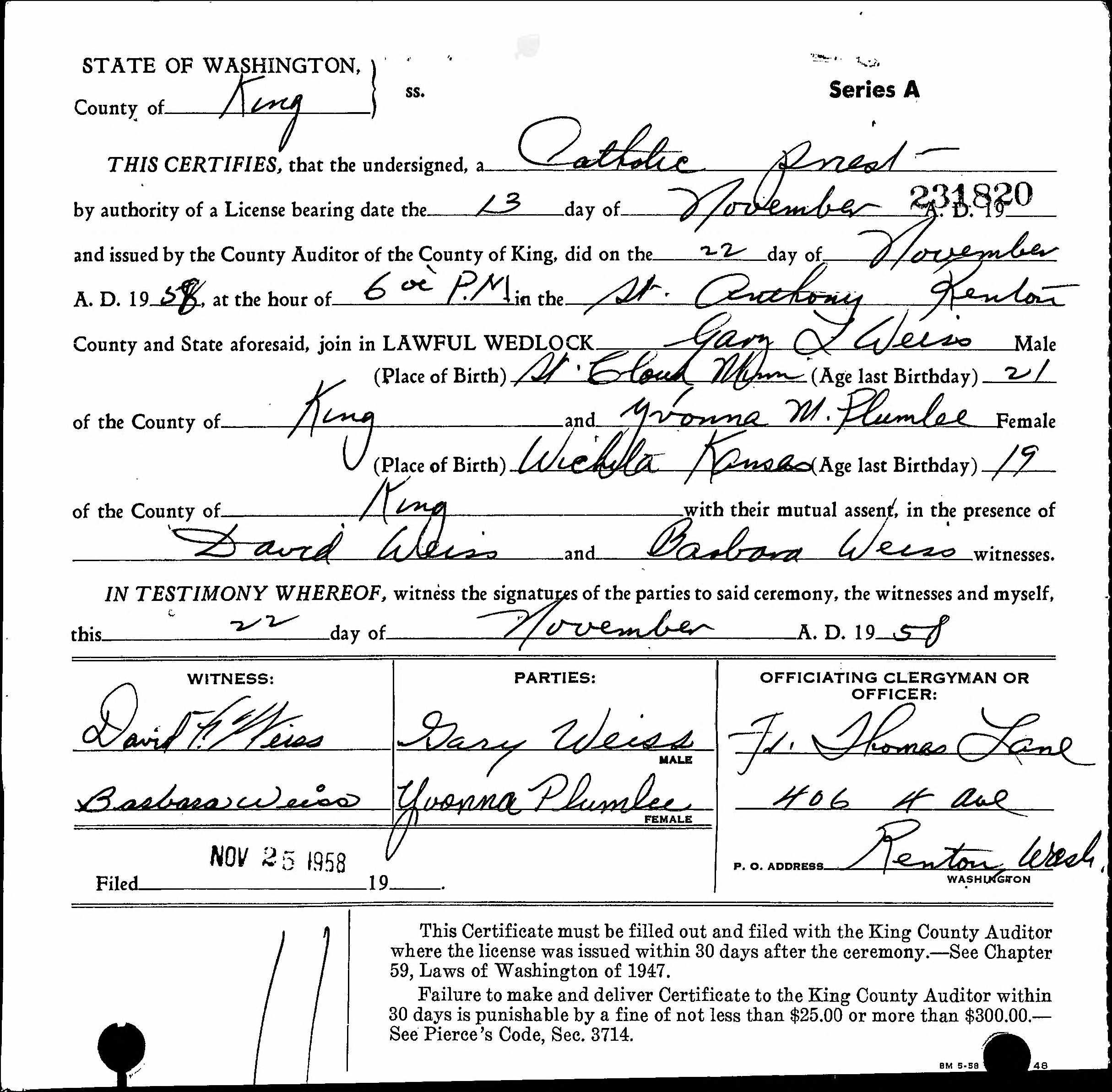 - Marriage Certificate - Marriage certificate for Gerald and Yvonna