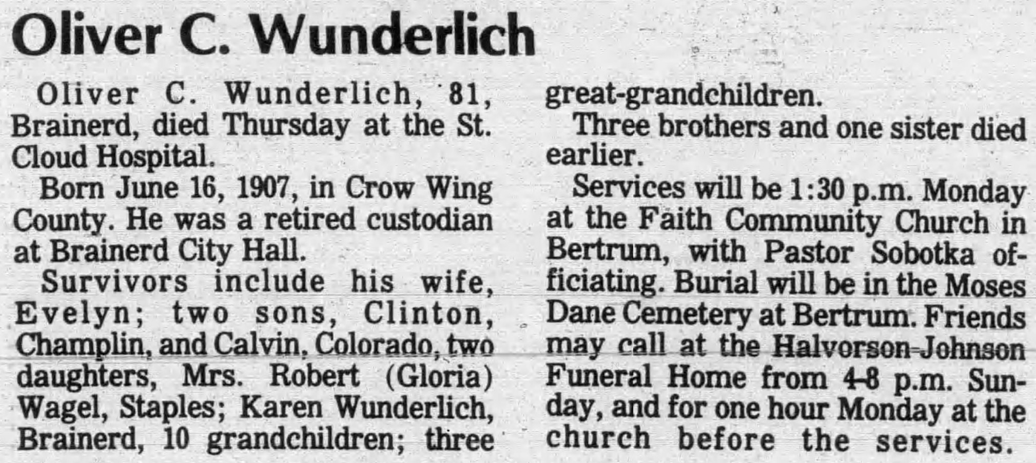 | Buried: | Evergreen Cemetery, Brainerd, Crow Wing Co, MN. |